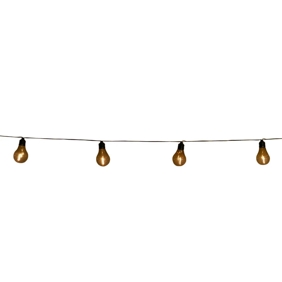 Buiten feestverlichting solar lichtsnoeren met 10 lampjes/bollampjes 450 cm. Tuinverlichting/feestverlichting met 10 warm witte LED bollampjes. De lichtbolletjes/feestlampjes met LED licht geven sfeer aan uw tuin of feestlocatie.