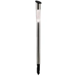 Solar tuinlamp, met LED verlichting voor de tuin. De lamp werkt op zonne-energie waardoor het zichzelf oplaadt gedurende de dag. Inclusief grondpin, zodat u ze bijvoorbeeld langs een looppad kunt zetten. Schakelaar: ja. Kleur licht: warm wit. Kleur lamp: zilver. Afmeting: 70 cm. Materiaal: RVS. Inclusief batterijen. Tuinlampen/tuinverlichting/prikspots op zonne-energie.