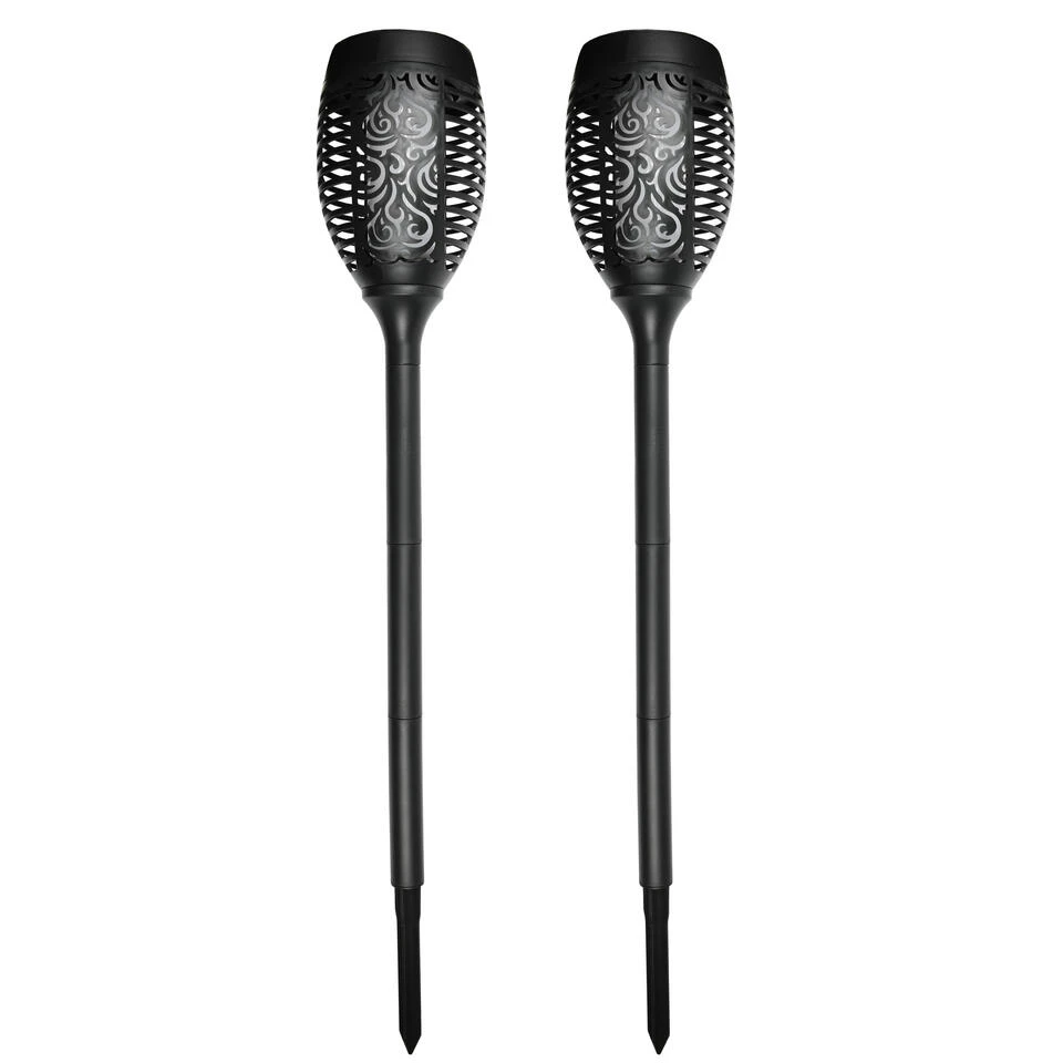 Benson Solar Tuinlamp – 2x – Zwart – LED Flame Effect – D12 X H74 CmA
