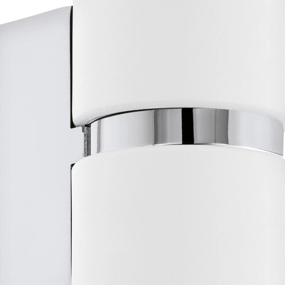 De EGLO Passa is een wandlamp gemaakt van staal. De lamp heeft een zijdeglans witte afwerking met chromen details. Deze wandlamp met GU10 fitting wordt geleverd inclusief LED lichtbronnen, en geeft warm wit licht (3000K). De wandlamp is geschikt voor een maximaal wattage van 2X4W. Door het unieke en moderne design is de Passa wandlamp gemakkelijk toepasbaar in diverse woon- en/of werkruimten.