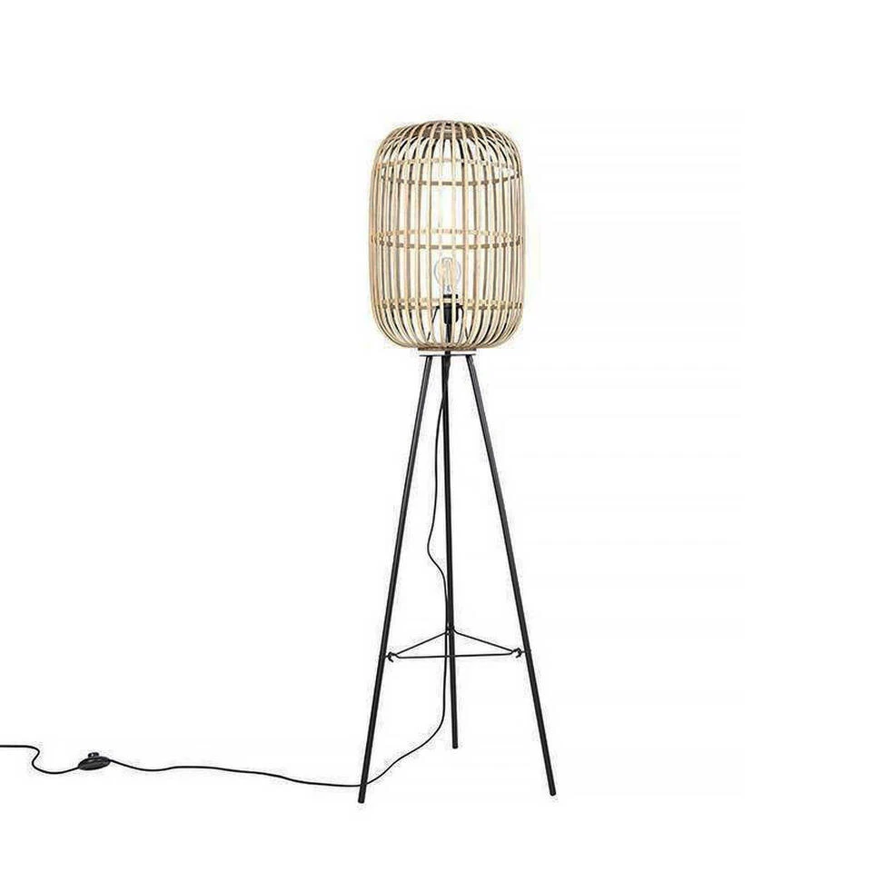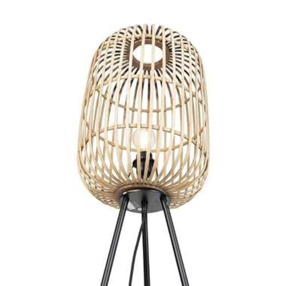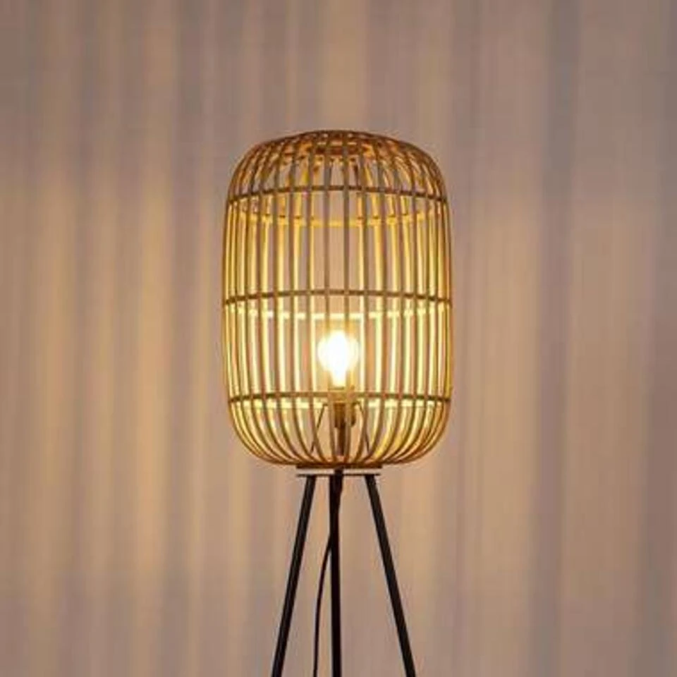 Haal de Ibiza stijl in uw woonkamer met de Treccia serie van Freelight. Deze leuke vloerlamp is voorzien van een rotan kap die geschikt is voor 1 lichtbron E27 van maximaal 40 Watt (excl.). De bovenkant van de korf heeft een opening om simpel een mooie (LED Filament) lichtbron in te draaien. De kap bestaat uit houten latjes die mooi in een korf gevormd zijn, de 3 poten zijn gemaakt van metaal.