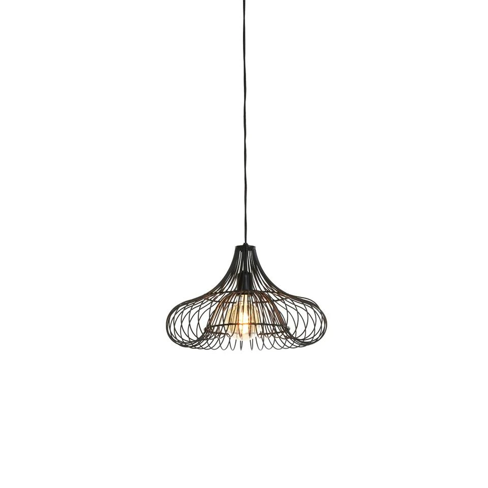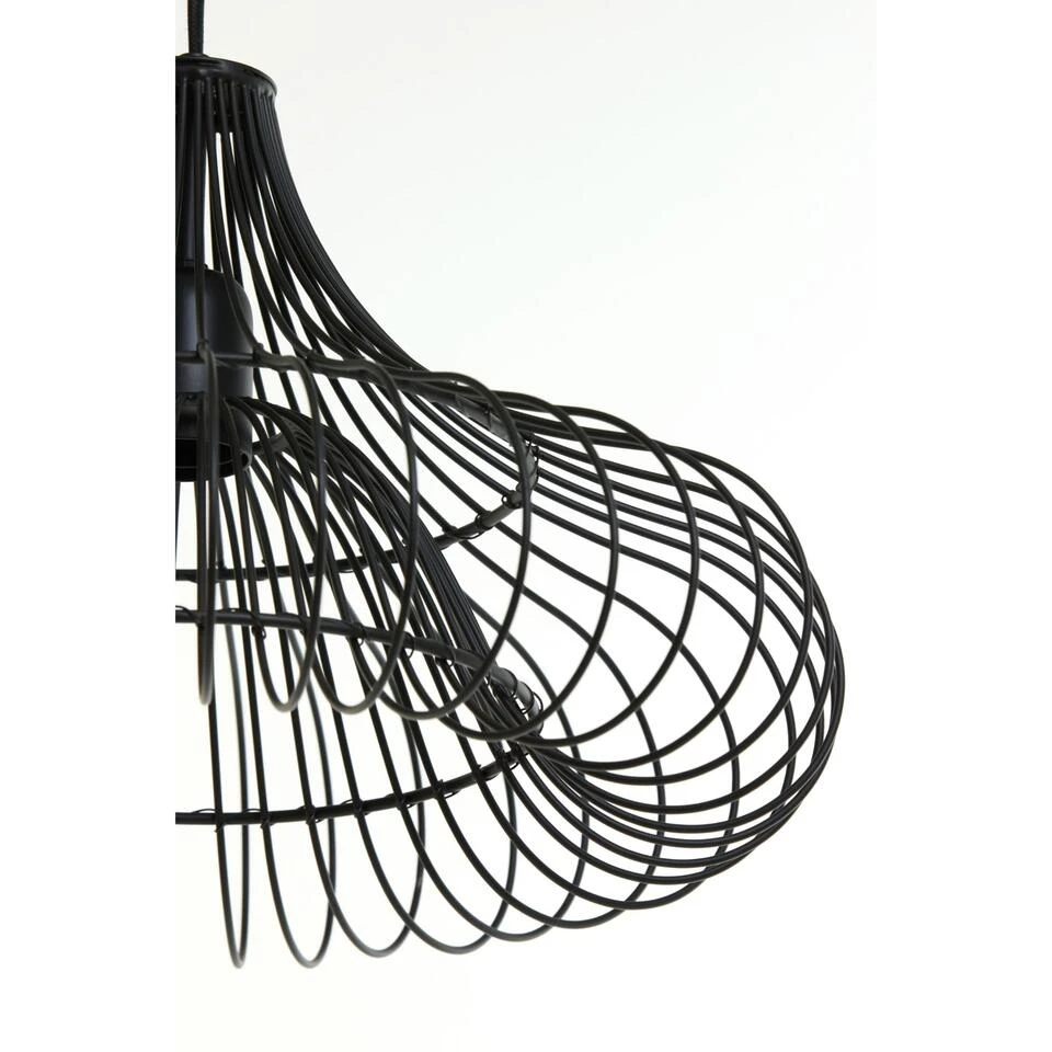 Een hanglamp kan een echte eyecatcher zijn. Zo ook hanglamp Alette. Deze hanglamp is mat zwart en is gemaakt van metaal. Door de unieke vorm valt de hanglamp meteen op in huis. De kap van de lamp bestaat uit metalen draden waardoor deze nog veel licht doorlaat. Hierdoor zal er ook een speels patroon schitteren op de muur. Hang deze hanglamp boven de eettafel in de eetkamer of in de slaapkamer en maak zo jouw interieur helemaal af. De hanglamp zal vooral tot zijn recht komen in een moderne en industriële woonstijl. De afmeting van de hanglamp is Ø39×24 cm en hij is geschikt voor lichtbronnen met een E27 fitting.