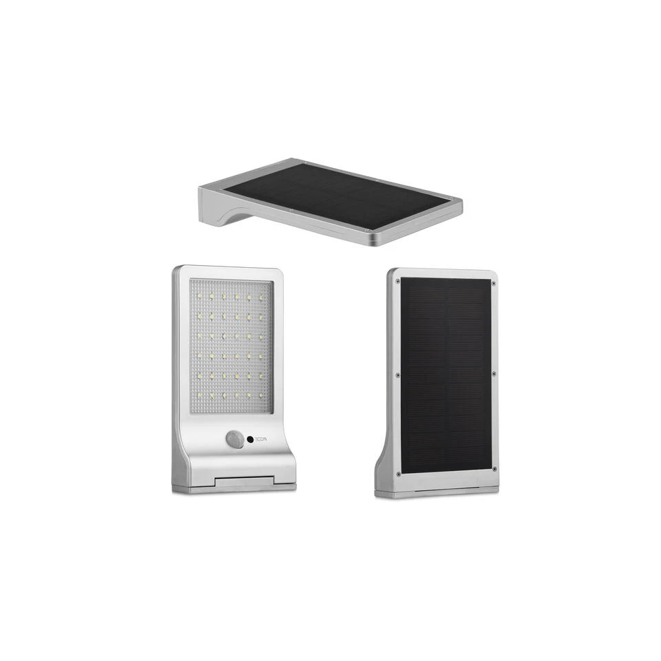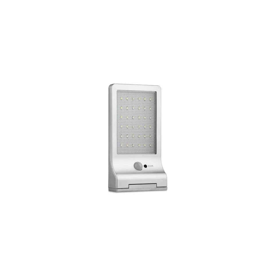 Buitenlamp met bewegingssensor: deze beveiligingslamp zal enorm handig zijn wanneer het donker wordt buiten en je wat extra licht nodig hebt in de tuin. De lamp is voorzien van een bewegingssensor met een bereik van 3 meter. Solar wandlamp: deze wandlamp werkt op zonne-energie. De buitenlamp heeft geen aparte stroomvoorziening nodig en heeft geen vervelende bekabeling. Deze lamp heeft een automatisch aan- en uitschakeling. Draadloze tuinverlichting: de beveiligingslamp bevat 36 LED lampjes. De oplaadtijd van de tuinlamp is 8 tot 10 uur en de werktijd is tot wel 20 uur bij lage helderheid en tot 4 uur bij een hoge helderheid. Waterdicht beveiligingslicht: deze beveiligingslamp is ultra dun. Het licht heeft een afmeting van 19,2 x 3 x 11 cm. Het lampje is voorzien van een zonnepaneel en laadt automatisch op. Deze lamp wordt ingeschakeld zodra het donker wordt. Buitenverlichting details: afmetingen: 19,2 x 3 x 11 cm; zonnepaneel: 5,5VDC 2W 250mAh; oplaadbare batterij: 2000mAh Li-ion; LED-lampen: 36 stuks (totaal max 2,16W vermogen LED-lampen); waterbestendig – IP44; bewegingsdetectie: Bereik van 3 m.