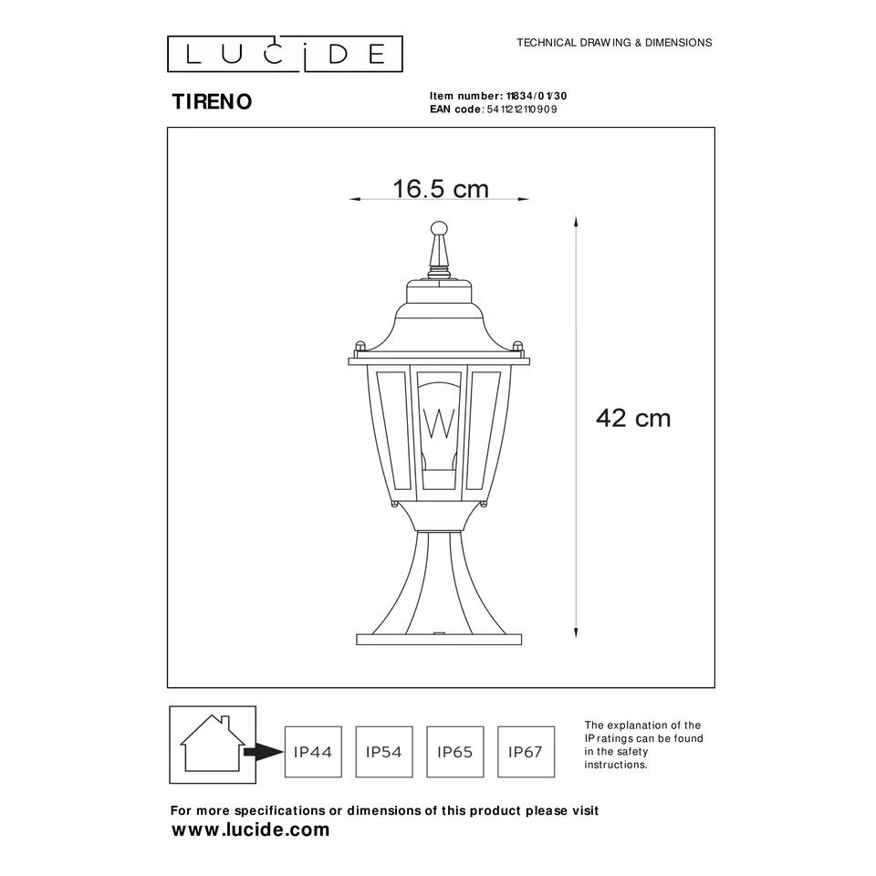 Tireno is een prachtige buitenlantaarn, die als sokkel fungeert op je terras of oprit. Deze prachtige klassieker heeft een grote E27-fitting, met een lichtbron tot 60W. Deze lantaarn voor buitengebruik is compatibel met een dimmer. Met haar hoogte van 42 centimeter maakt de lamp als het ware een statement. Dankzij het pure, elegante en slanke ontwerp dient Tireno zelfs als voortreffelijke decoratie. Twee voordelen in een prachtige buitenlamp!