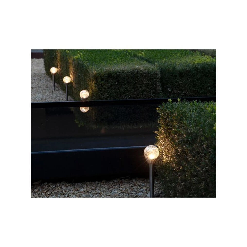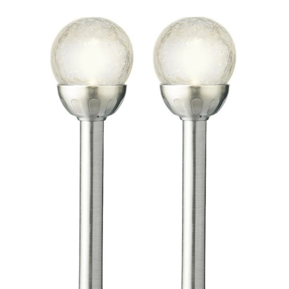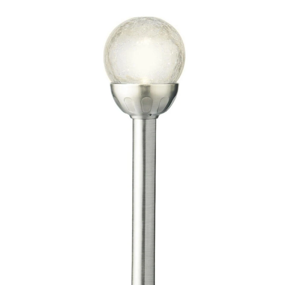 Materiaal: kunststof. Formaat diameter: 8 cm, hoogte: 30,5 cm. Lengte grondpin: 11 cm. Kleur licht: warm wit. Branduren indien volledig opgeladen: ca. 8 uur. De brandduur hangt af van de weersomstandigheden, 8 uur volle zon zorgt voor een maximaal aantal branduren. Het lampje is niet vervangbaar.