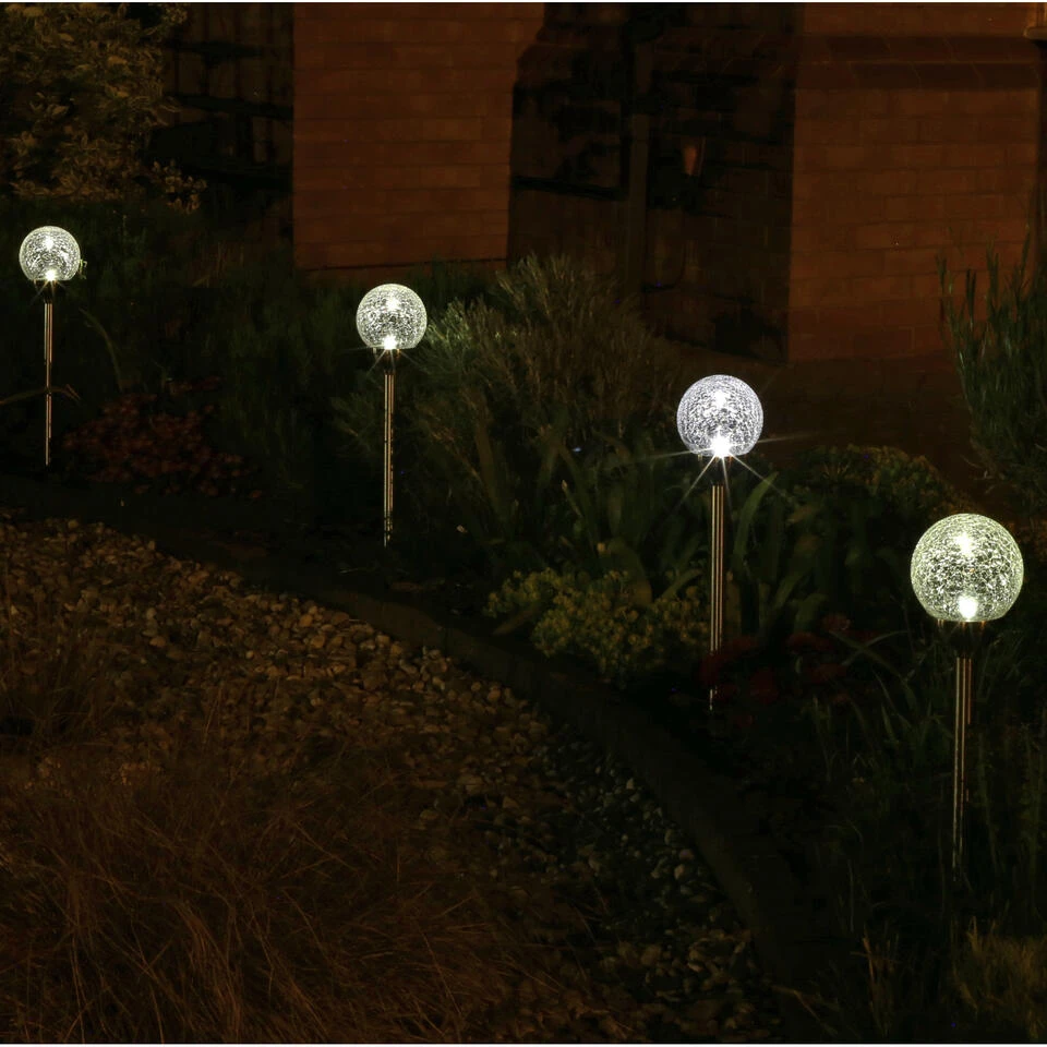 1x Solar tuinlamp met Softtone effect LED verlichting voor in de tuin. De milieuvriendelijke LED tuinfakkel heeft 20 LED lamp per lamp en werkt op zonne-energie waardoor deze zichzelf opladen gedurende de dag, als de lamp volledig is opgeladen heeft deze ongeveer 6 branduren. Deze lamp is uitgevoerd met steker waardoor de lamp gemakkelijk in de aarde te prikken/steken is. Schakelaar: ja. Kleur licht: Softtone effect. Kleur: RVS. Afmeting: D12 x H55 cm. Solar paneel: 2V 40 mA. Batterij: 1 x 1.2V AA 200 mAh (oplaadbaar). Materiaal: glas en RVS. Tuinlampen/tuinverlichting/prikspots op zonne-energie.