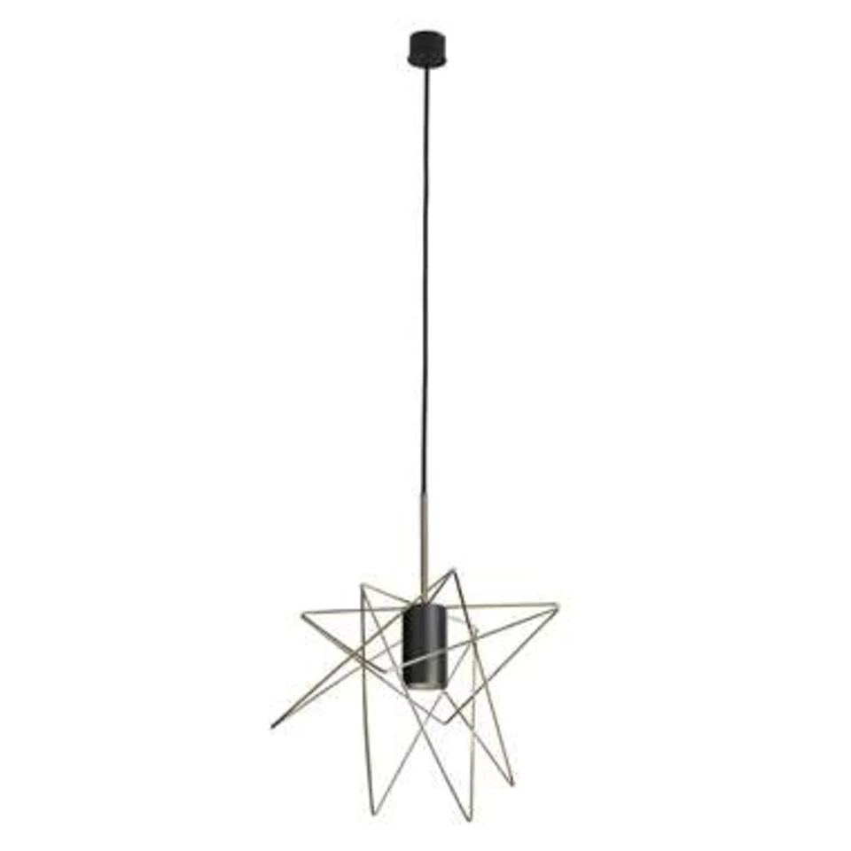 Deze Gstar hanglamp heeft een doorsnede van 30 cm en de hoogte van de metalen korf is 36 cm, de totale hoogte is 130 cm en simpel in te korten. Kleur: mat-zwart met goud voorzien van zwart stoffen snoer.