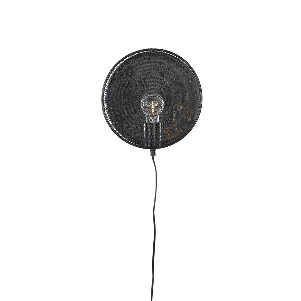 Dit mooie wandlampje is gemaakt met een stevig draadmetaal. Achter een ronde, met gaasdraad bedekte schijf schuilt de lichtbron. Deze lamp wordt meteen een eye-catcher in elke ruimte!