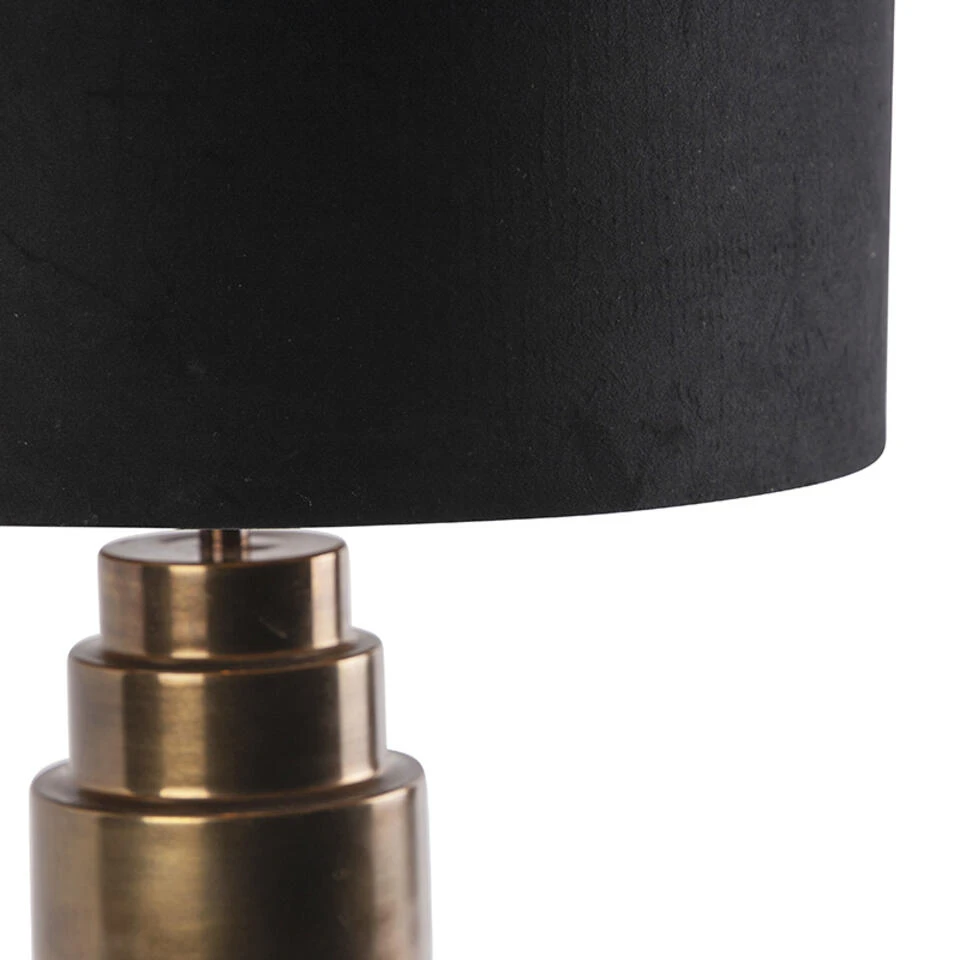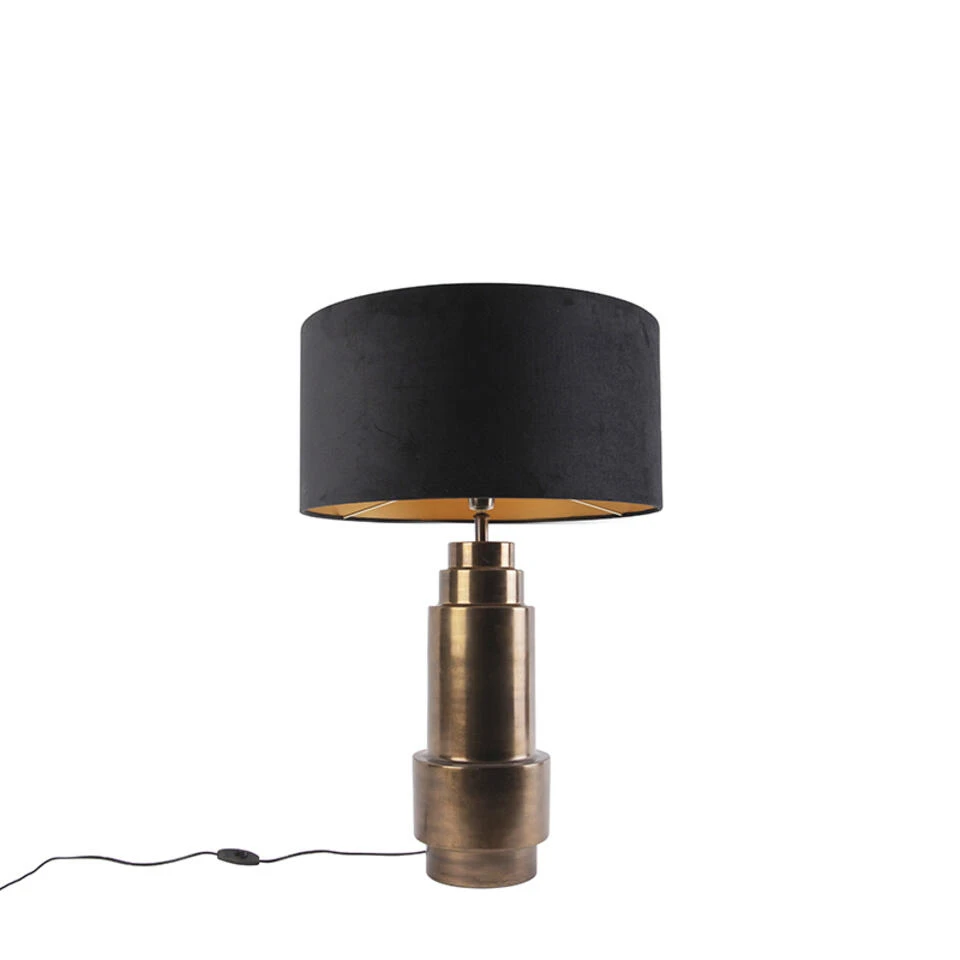 QAZQA Art Deco Tafellamp Brons Velours Kap Zwart Met Goud 50cm – Bruut