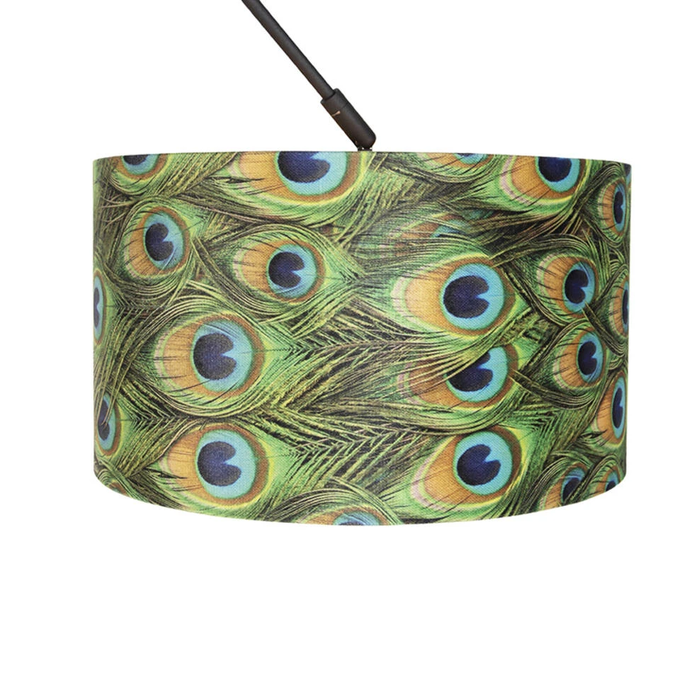 QAZQA Hanglamp Met Velours Kap Pauw Met Goud 35 Cm – Blitz I Zwart