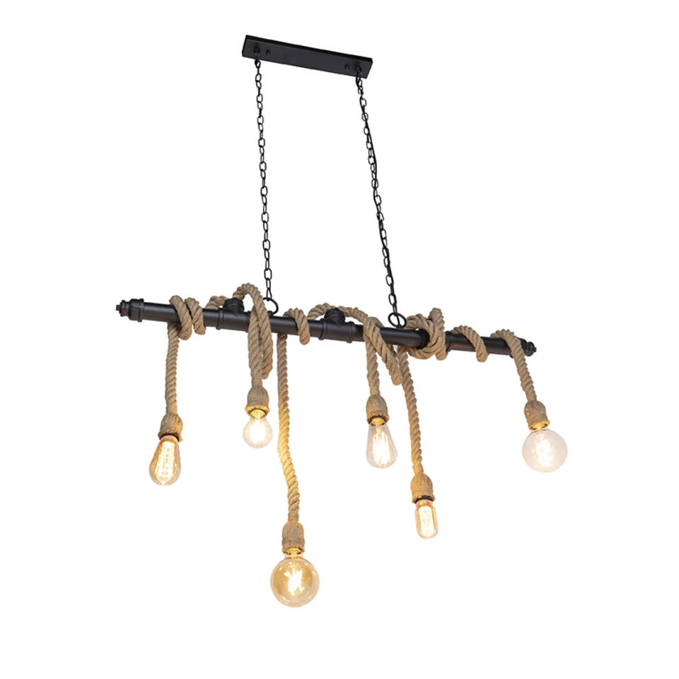 QAZQA Industriële Hanglamp Zwart 6-lichts – Plural