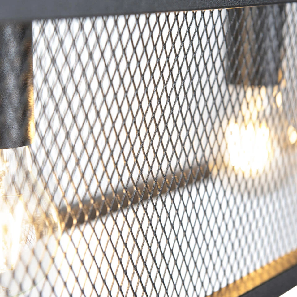 QAZQA Industriële Hanglamp Zwart Met Gaas 4-lichts – Cage