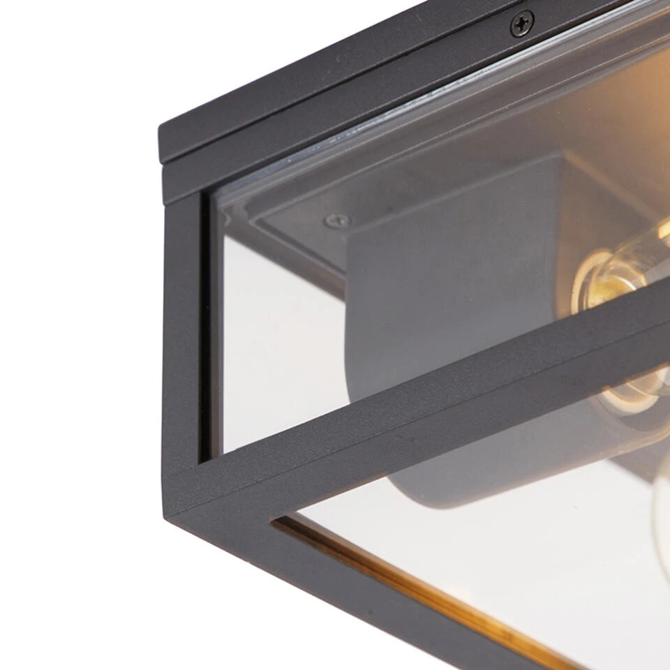 QAZQA Industriële Plafondlamp Zwart IP44 2-lichts – Charlois