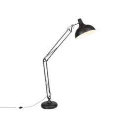 QAZQA Industriële Vloerlamp Zwart Verstelbaar – Hobby
