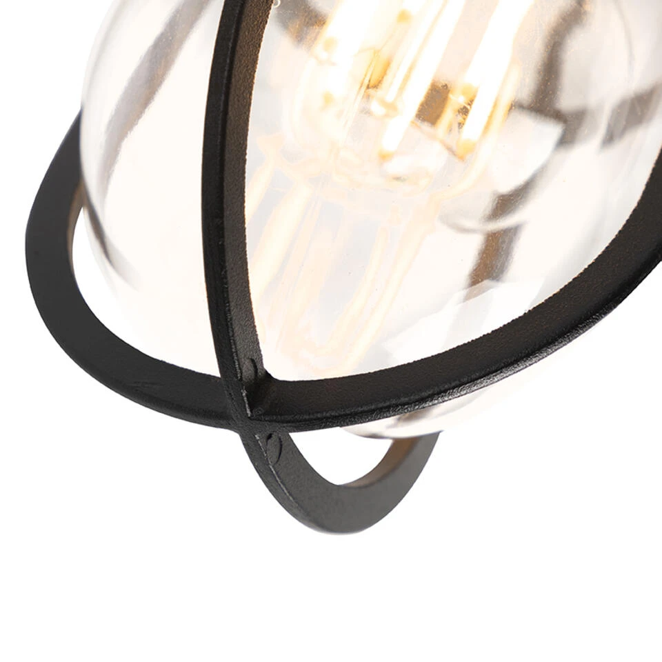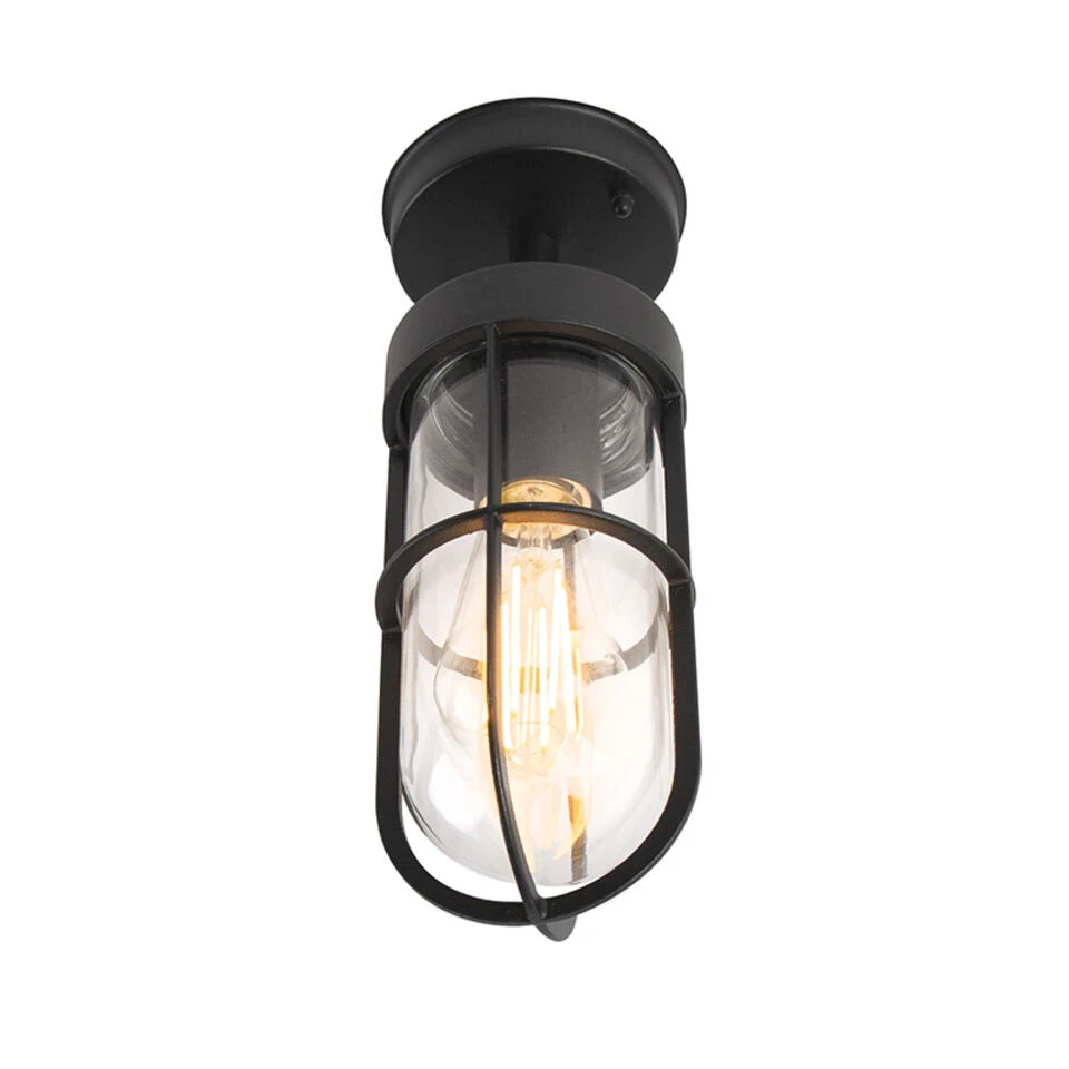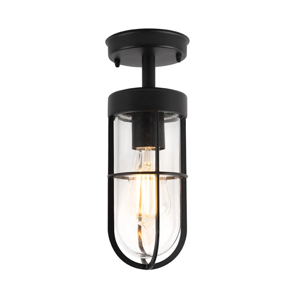 QAZQA Landelijke Buitenplafondlamp Zwart Met Glas IP44 – Elza