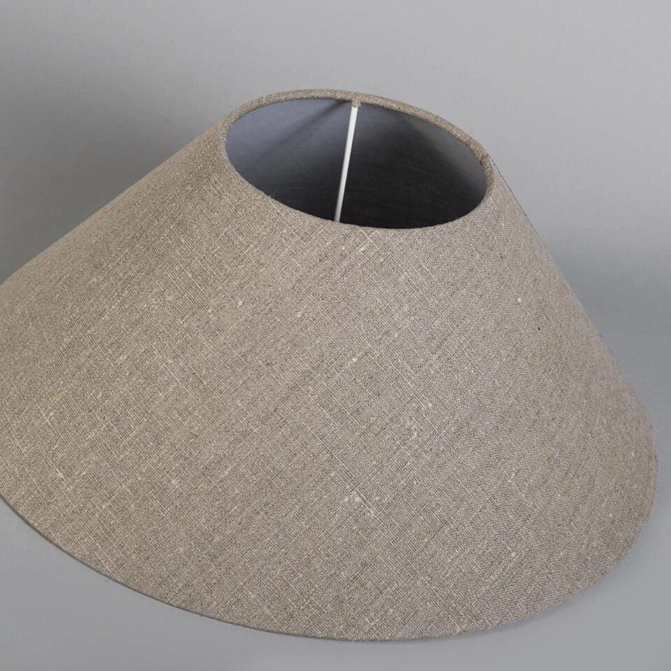 Deze grote, ronde grijs/bruine lampenkap van het merk QAZQA past op een staande vloer- of tafel- of schemerlamp en op armaturen met een grote E27 fitting. De lampenkap is taps toelopend en heeft een diameter van 40 cm aan de onderkant, 15 cm aan de bovenkant en heeft een hoogte van 16 cm. De ronde taps toelopende kap van linnen is vakkundig afgewerkt in een zeer luxe structuur en geeft je landelijk interieur een warme en gezellige uitstraling. Pas deze prachtige grijze kleur toe en geniet van sfeervolle momenten in je woonkamer, slaapkamer, hal of keuken.