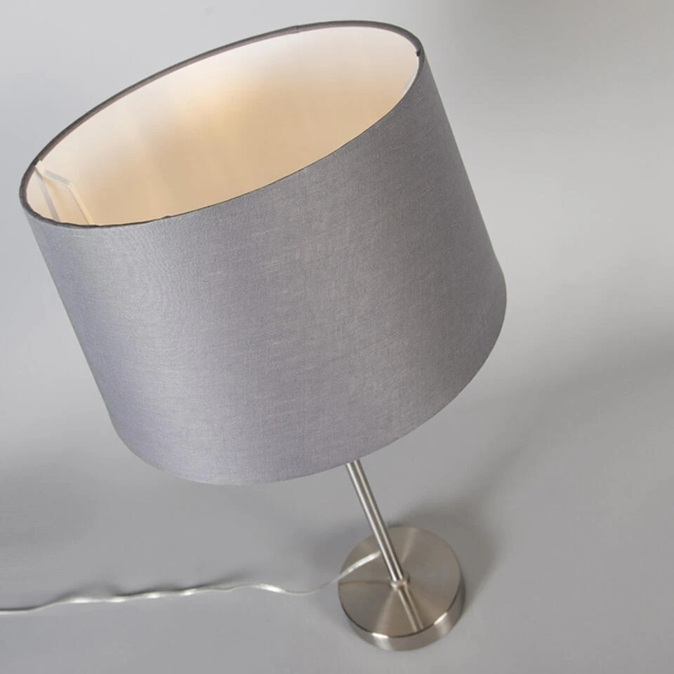 QAZQA Tafellamp Staal Met Kap Grijs 35 Cm Verstelbaar – Parte