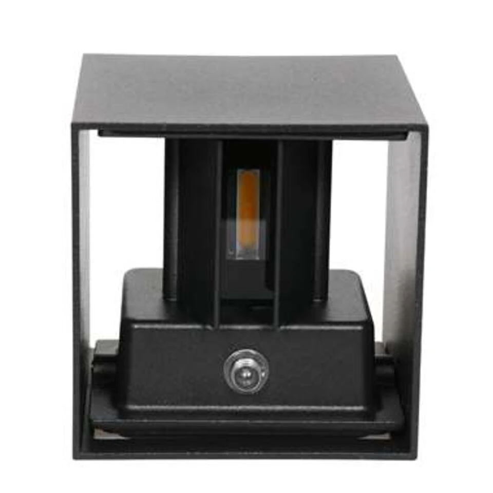 Vierkante kleine buitenlamp gemaakt van Aluminium die is voorzien van een ingebouwde dag/nacht sensor. Dit betekent dat deze buitenlamp automatisch aangaat als het gaat schemeren en sochtends uit gaat als het weer licht gaat worden. Ideaal omdat je nooit meer de lamp hoeft te schakelen of moet gaan knoeien met een tijdschakelaar. Het aparte is dat dit armatuur is voorzien van 4 “klepjes” waarmee de stralings hoek veranderd kan worden. De bundel boven groot en beneden klein of andersom of toch allebei dezelfde hoek? De keuze is aan u en veranderen is een fluitje van een cent! De hoeken zijn onafhankelijk stelbaar tussen de 40 en 120 graden. Deze buitenlamp wordt geleverd incl. 2x ingebouwde LED lampen van ieder 4 Watt. Deze LED lichtbronnen geven bij elkaar 380 Lumen aan licht in een warm witte lichtkleur (2700 Kelvin). De hoogte is 10 cm en de breedte is 10 cm, de diepte is ook 10 cm. Kleur: Zwart.