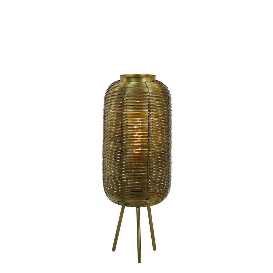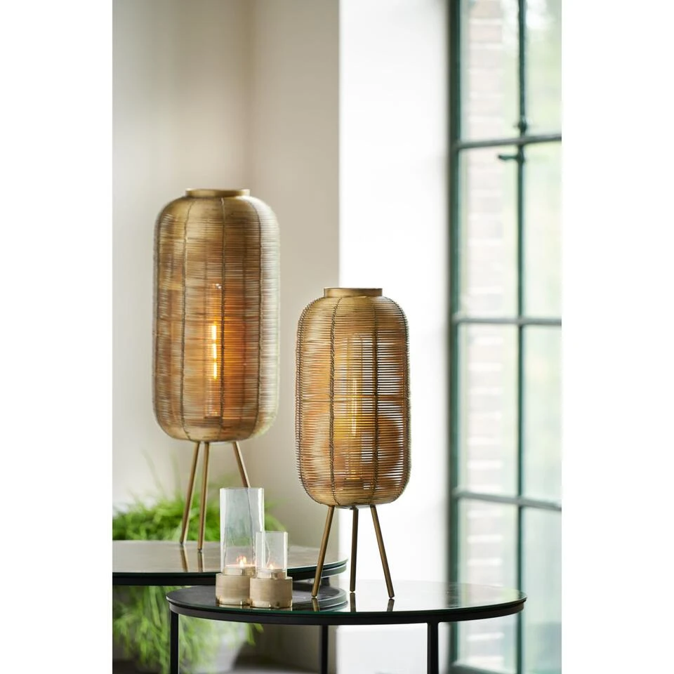 Tomek is een industriële tafellamp die niet alleen functioneel is, maar is ook een prachtige woonaccessoire in de vorm van een lantaarn. De tafellamp heeft een bronzen matte kap van metaaldraad en geeft een leuk lichtspel in je interieur. Niet alleen de prachtige strakke lijnen vallen op, maar ook de antiek bronzen pootjes geven een leuk effect. De lamp is met de hand gemaakt én van Nederlandse bodem van het merk Light & Living. De lamp heeft een diameter van 21 cm en is 55 cm hoog.