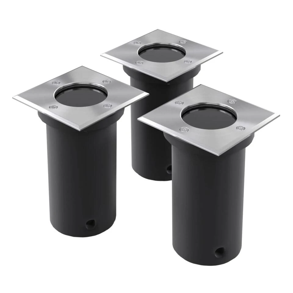 De grondverlichtingsset is gemaakt van roestvrij staal en aluminium en elke lamp heeft een diffuser van gehard glas. Deze grondlampen zijn eenvoudig te monteren.