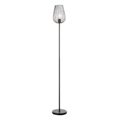 Vloerlamp Lagos is een opvallende mat zwarte staande lamp. Deze moderne en eigentijdse lamp voelt zich thuis in interieurs met een moderne look. Deze lamp is gemaakt van metaal en mat zwart van kleur. Zet deze stijlvolle lamp in de woonkamer en creëer de sfeer die jij wenst! Met E27-fitting.